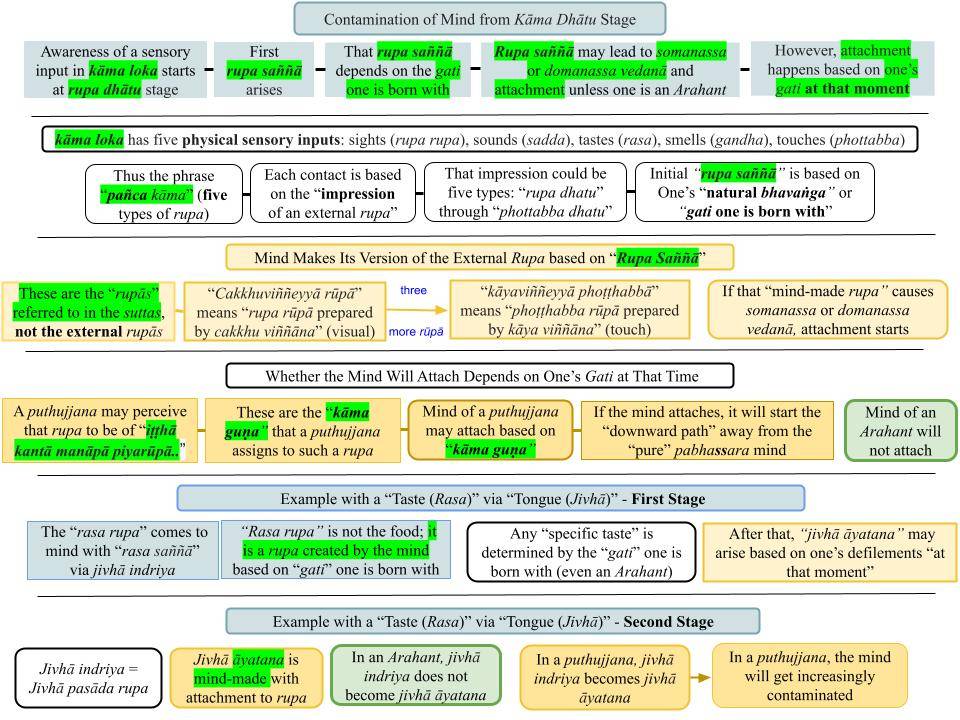 Note that it starts at the “rūpa dhātu” stage for sensory input on a “rūpa rūpa” or a “visual object,” “sadda dhātu” for a “sound,” “rasa dhātu” for a taste, .. to “dhamma dhātu” for a “memory or a thought object.”